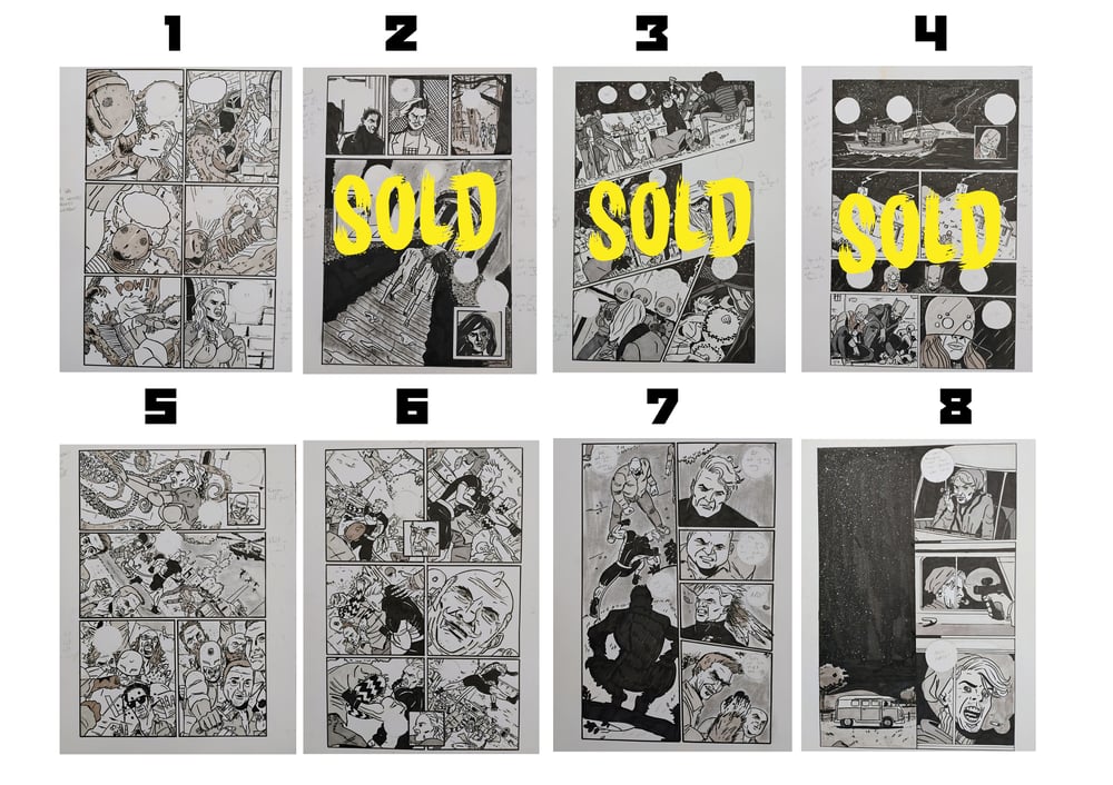 Signed original art on A3 Bristol Board. Black indian ink, grey tone markers and occasional (sealed) charcoal.